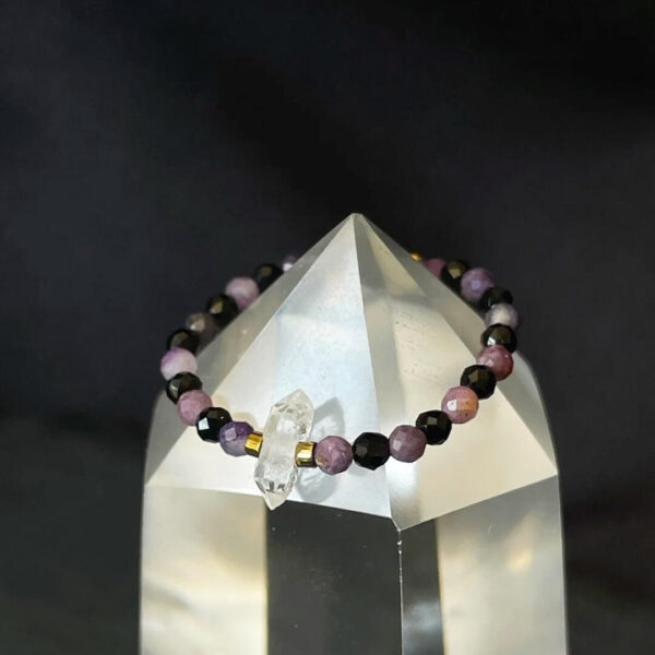 Pierścionek elastyczny z czaroitem, czarnym turmalinem i herkimerem