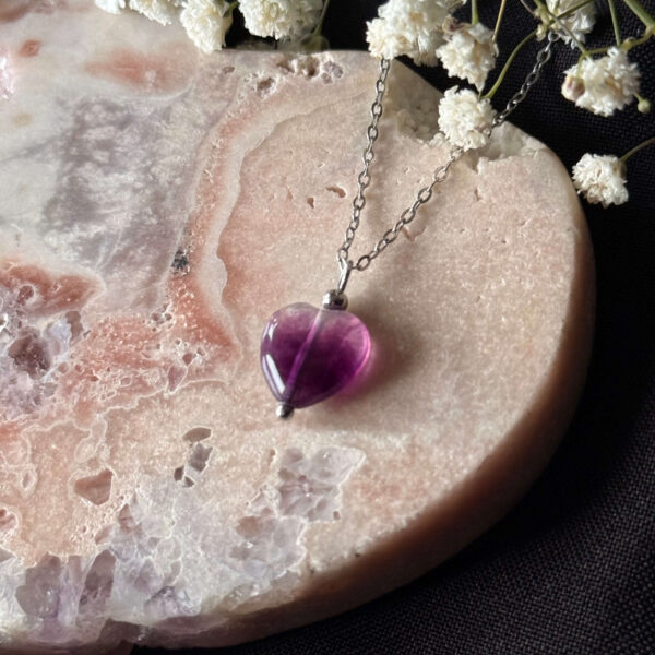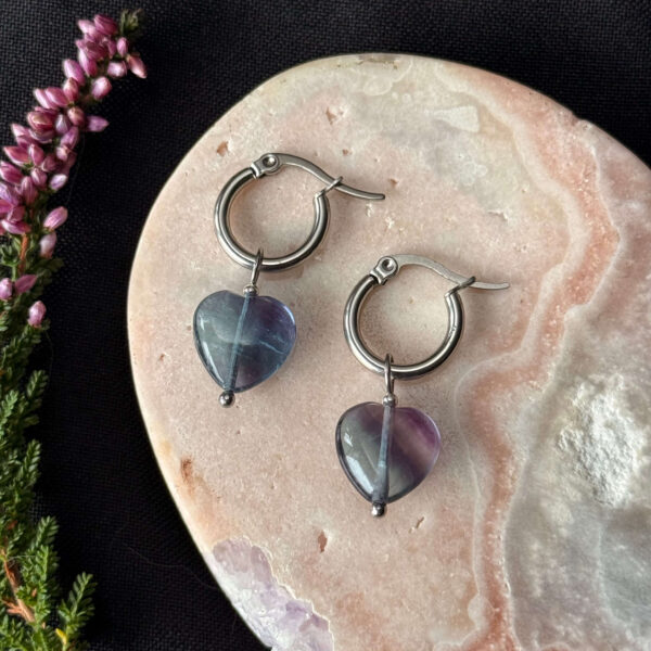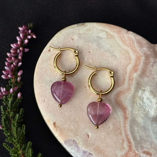 Kolczyki koła z serduszkami z fioletowego fluorytu