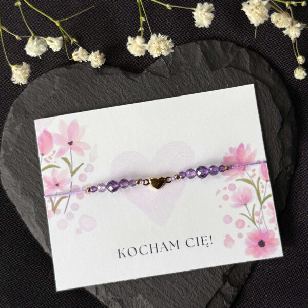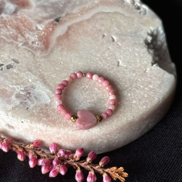 Pierścionek elastyczny z kwarcem różowym i mini serduszkiem
