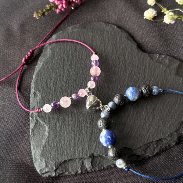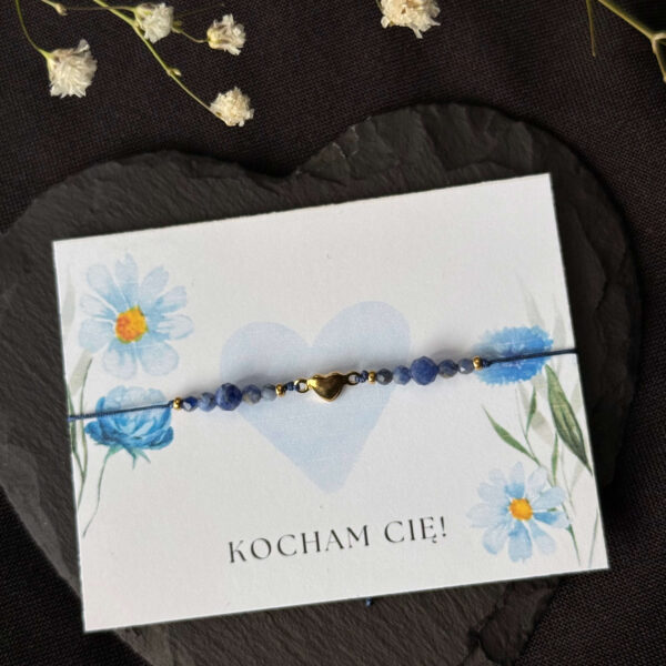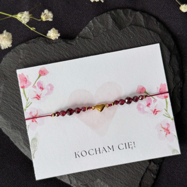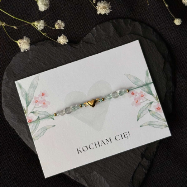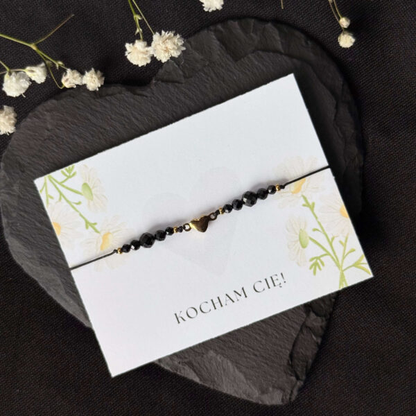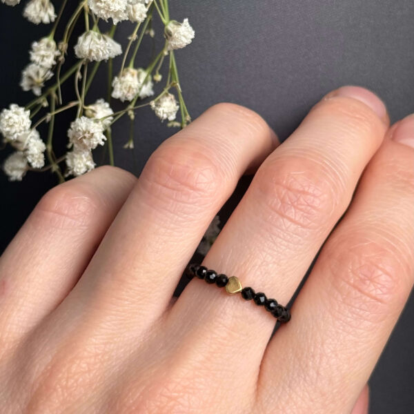Pierścionek elastyczny z czarnym turmalinem i mini serduszkiem