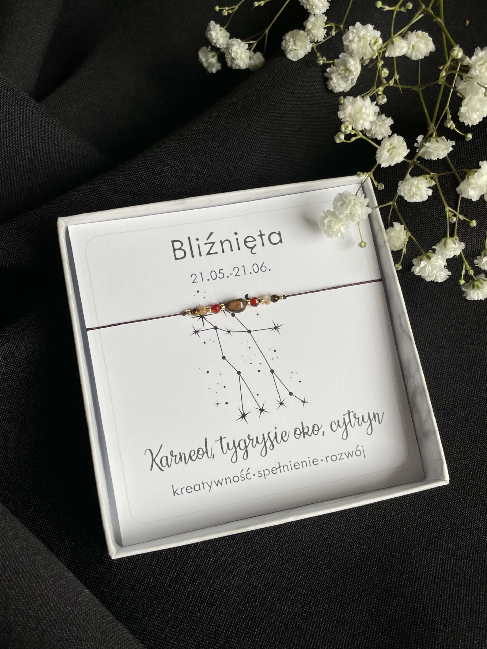 Ręcznie wykonana bransoletka, dedykowany dla osób urodzonych pod znakiem Bliźniąt (21.05.-21.06.).