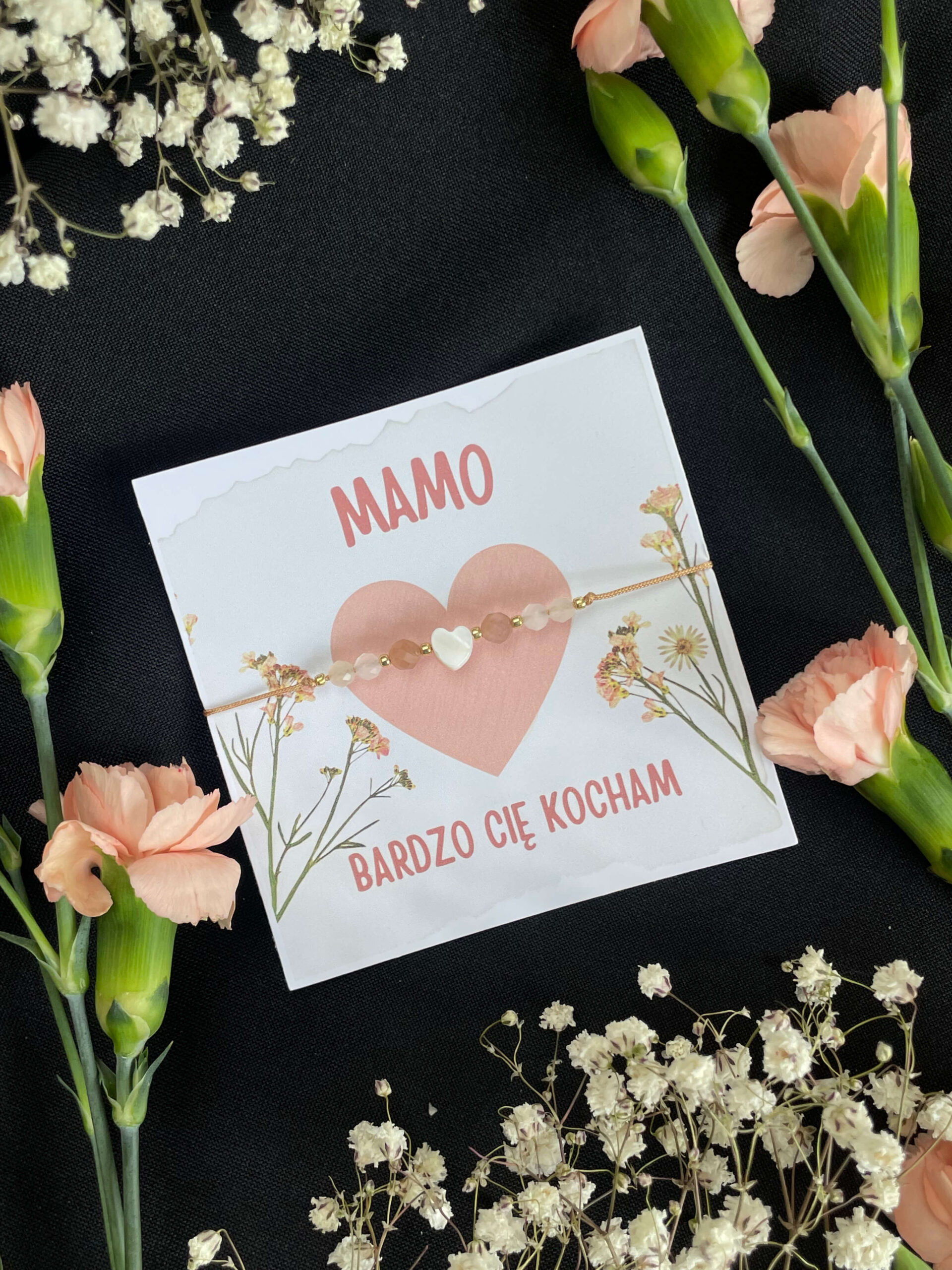 • Bransoletka na ozdobnym kartoniku z dedykacją dla Mamy,