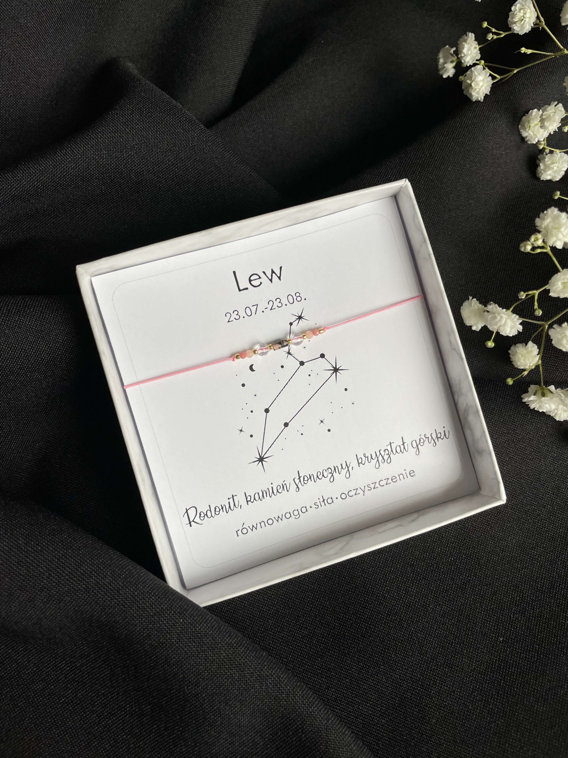 Ręcznie wykonana bransoletka, dedykowany dla osób urodzonych pod znakiem Lwa (23.07.-23.08.).