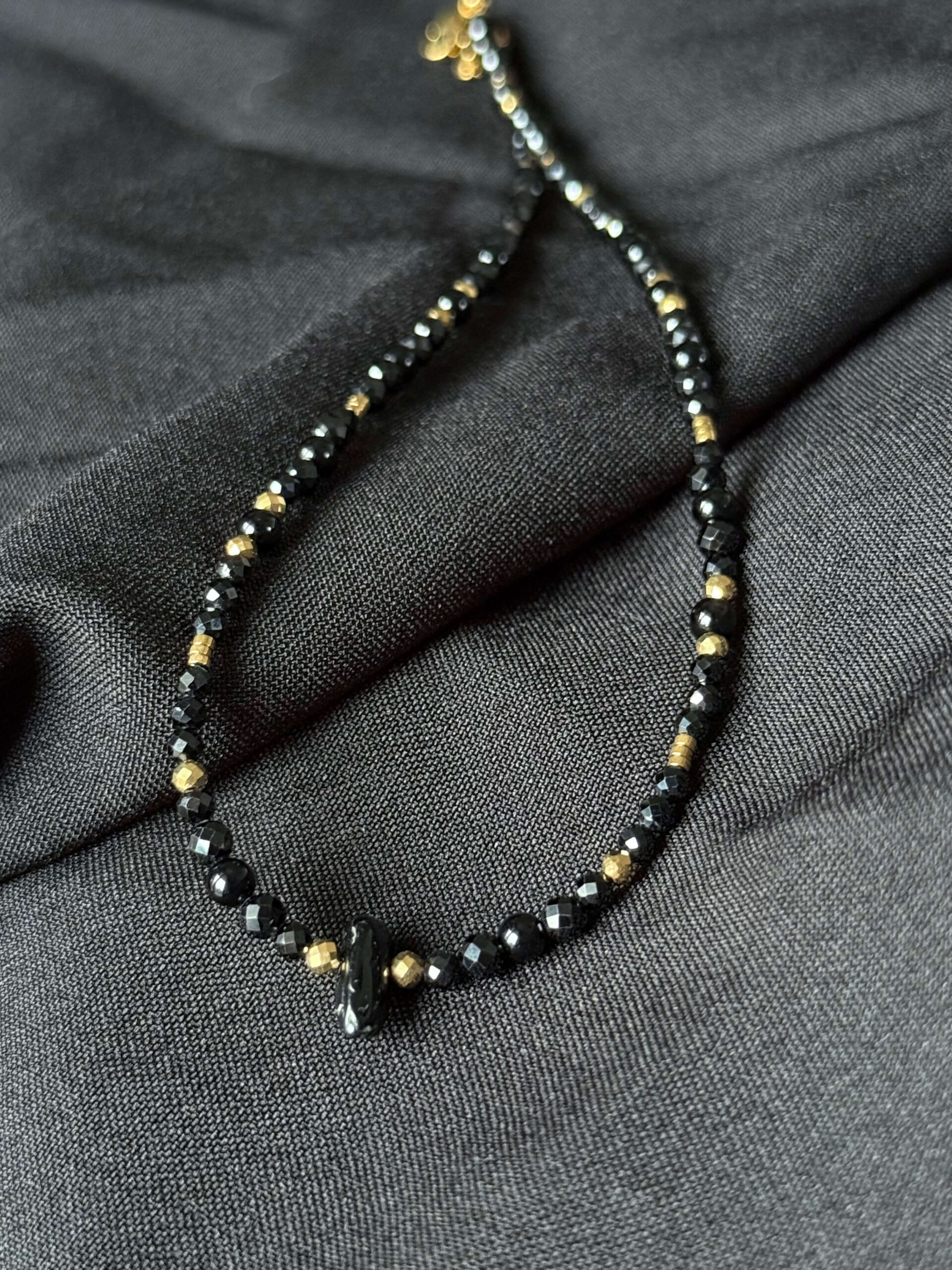 - sercem naszyjnika jest szlifowana i polerowana bryłka czarnego turmalinu,
