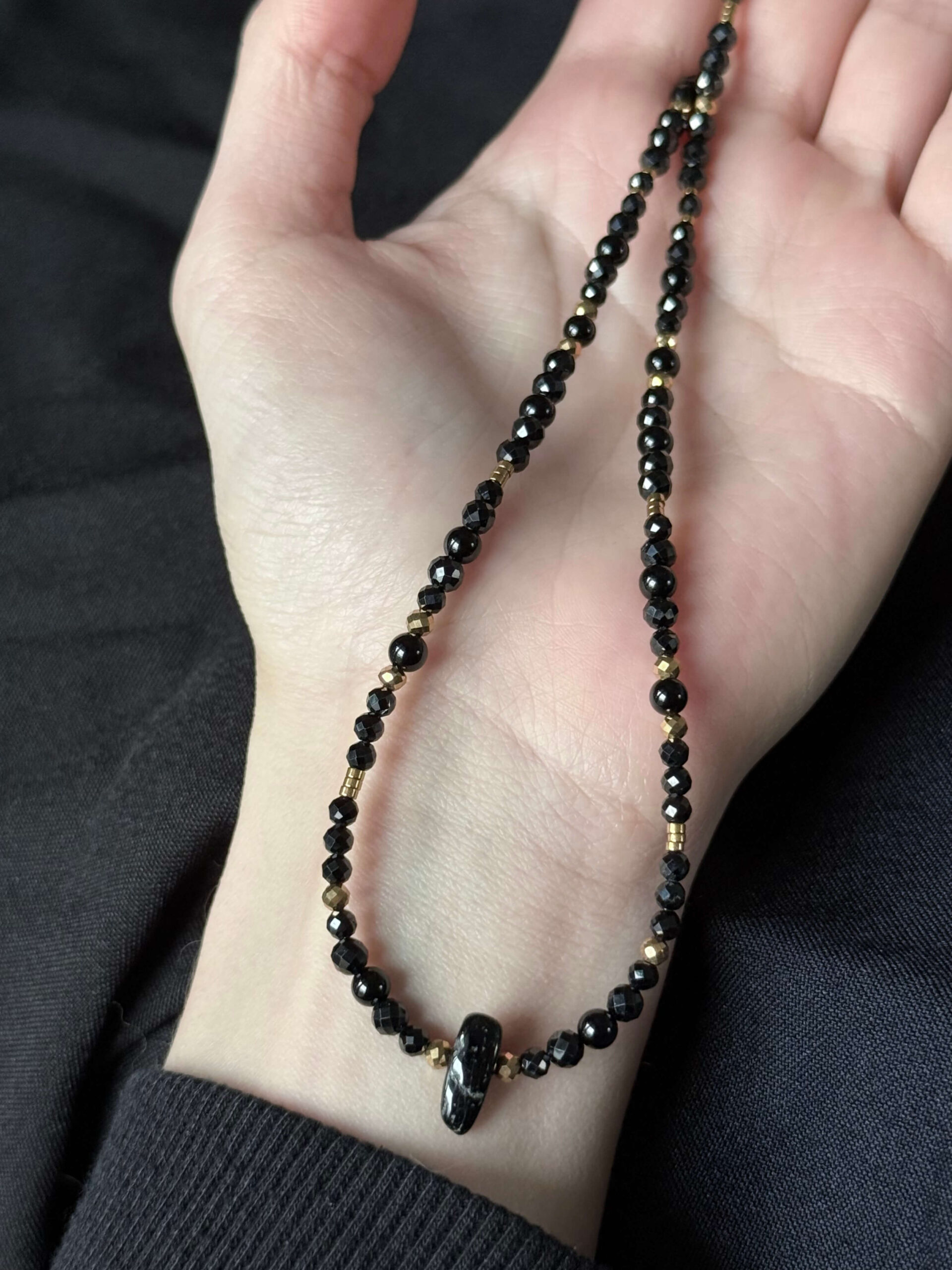 Naszyjnik z czarnym turmalinem, onyksem i hematytem