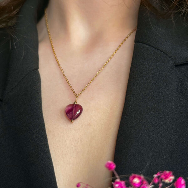 Łańcuszek z serduszkiem z fioletowego fluorytu N°1