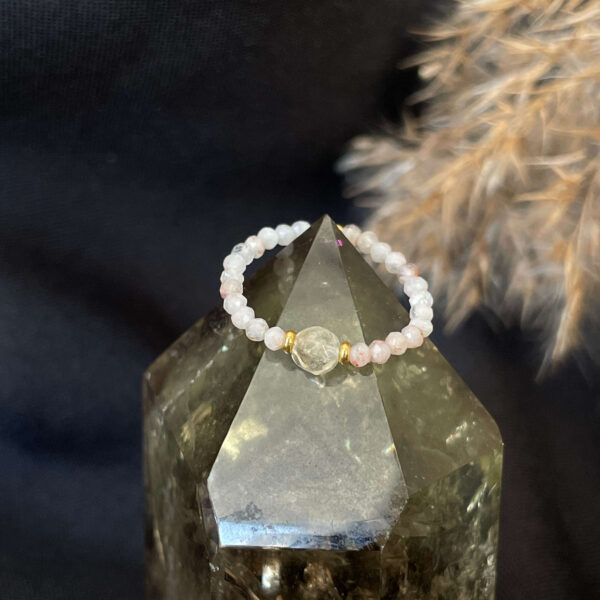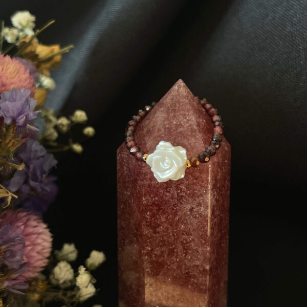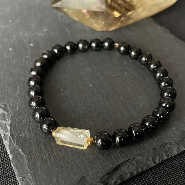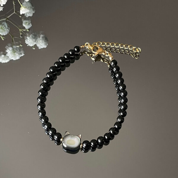 Bransoletka z czarnym turmalinem i kotkiem z masy perłowej