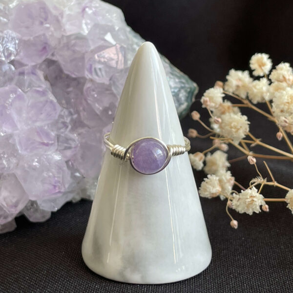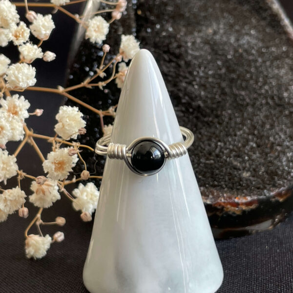 Pierścionek z drutu z czarnym turmalinem, srebrny