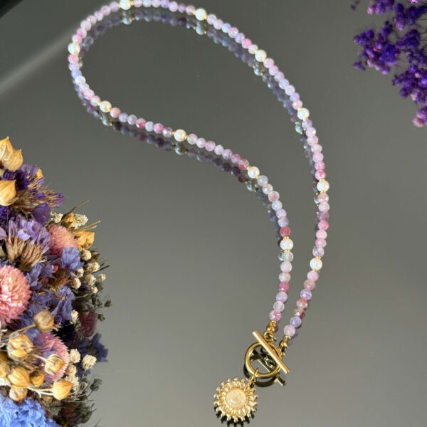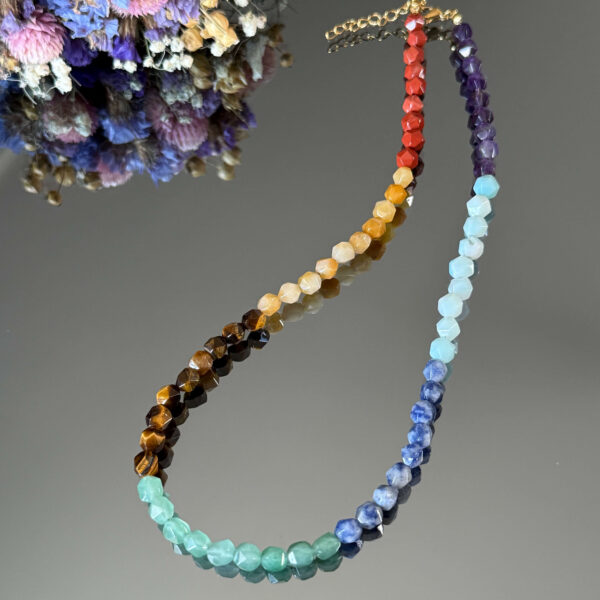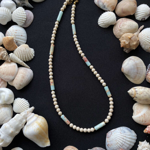 Naszyjnik z jaspisem, kamieniem rzecznym i muszlą, regulowany