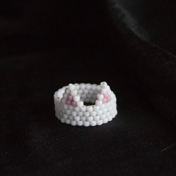 Pierścionek biały kotek
