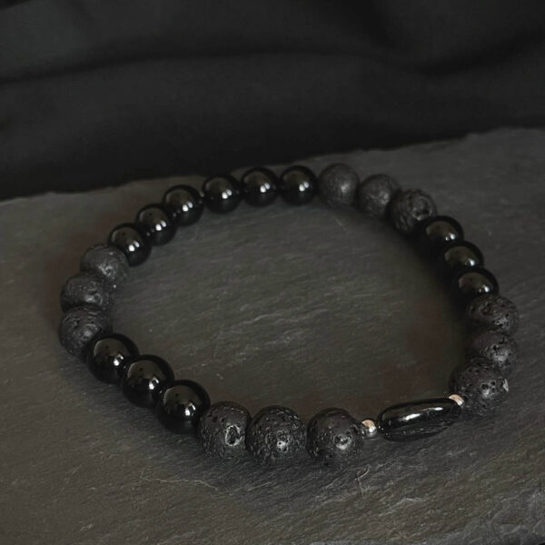 Bransoletka męska lawa, onyks i czarny turmalin