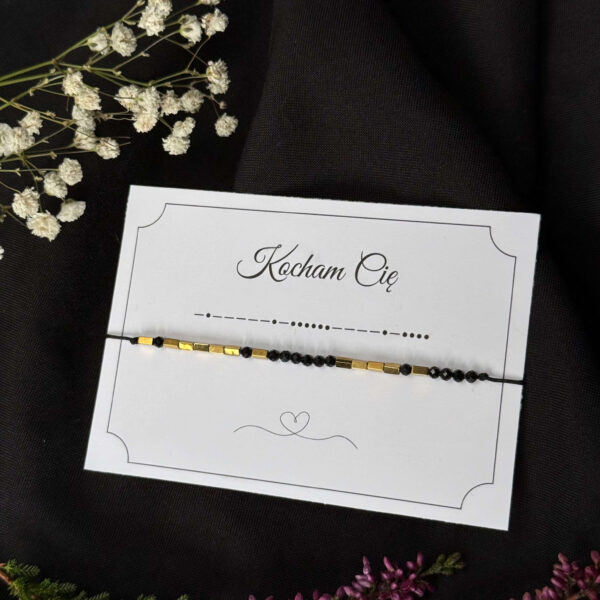 Bransoletka Kod Morse’a „Kocham Cię” – czarny turmalin