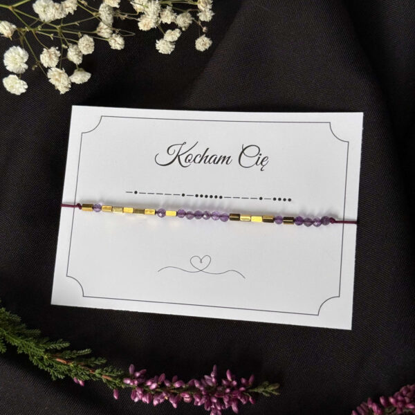 Bransoletka Kod Morse’a „Kocham Cię” – ametyst