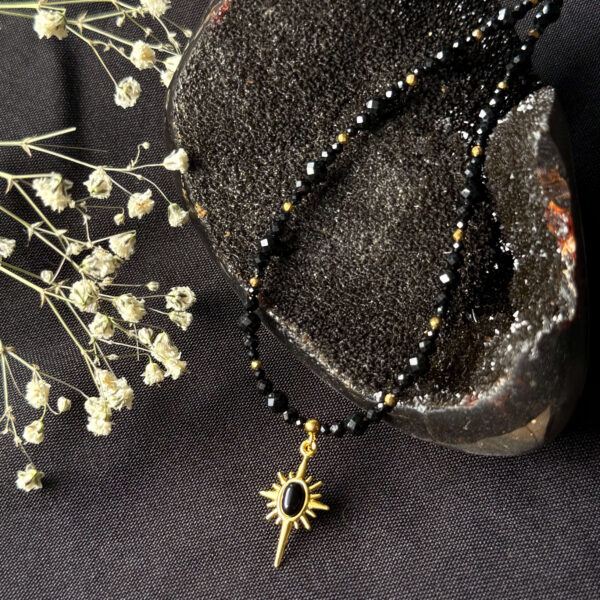 Naszyjnik z czarnym turmalinem, onyksem i zawieszką słońcem N°2