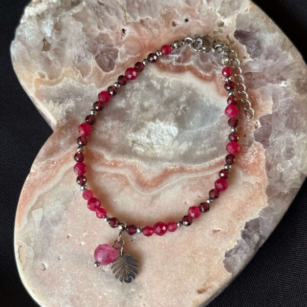 Bransoletka z jadeitem, granatem i hematytem z zawieszką monstery
