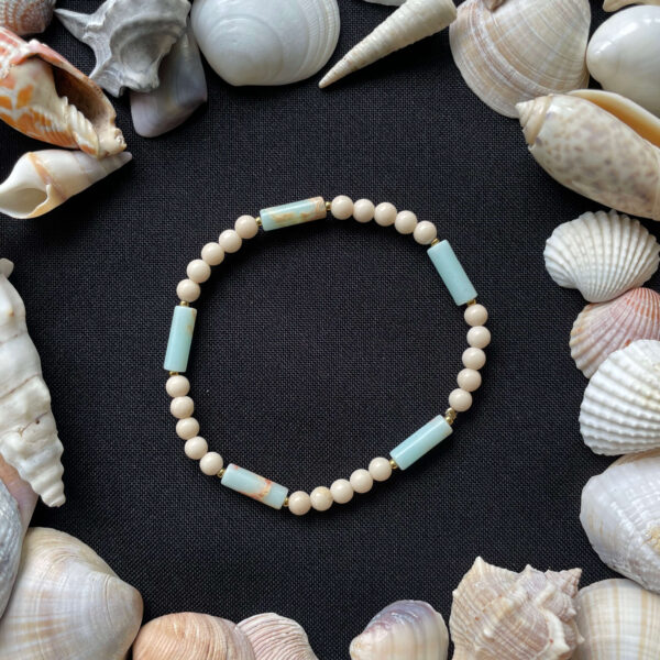Naszyjnik z jaspisem, kamieniem rzecznym i muszlą, regulowany