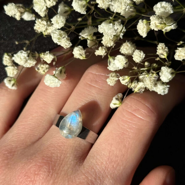 Pierścionek stalowy z kamieniem księżycowym N°1