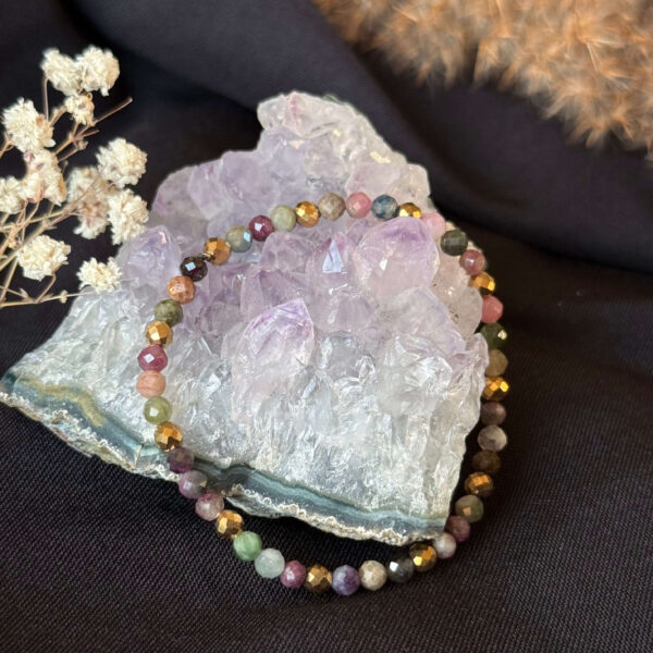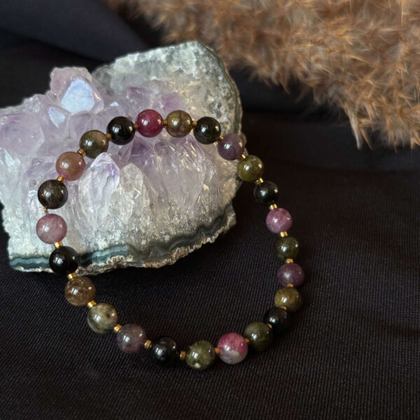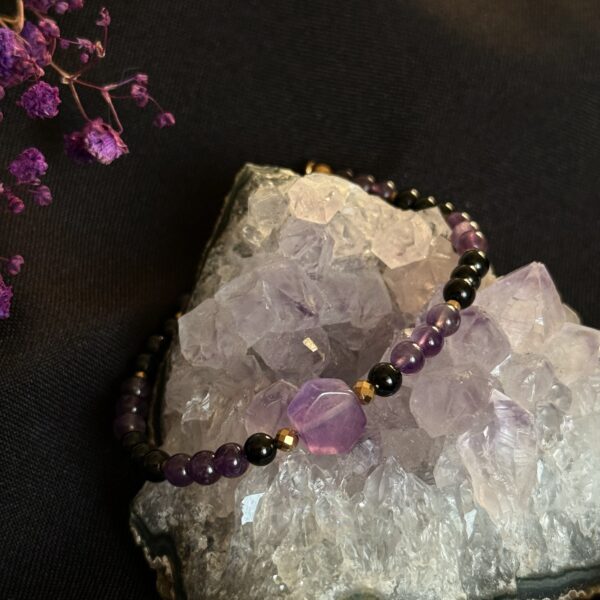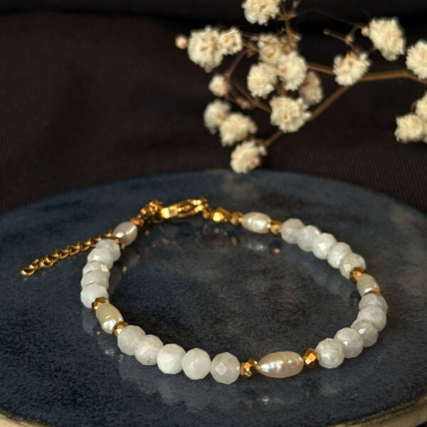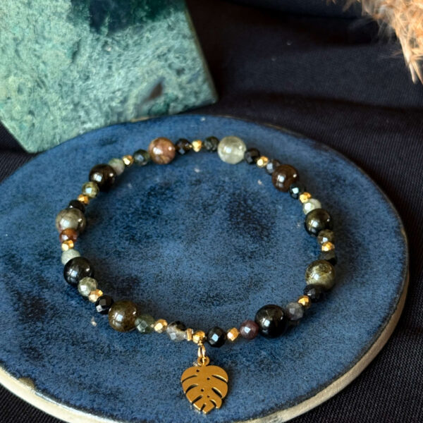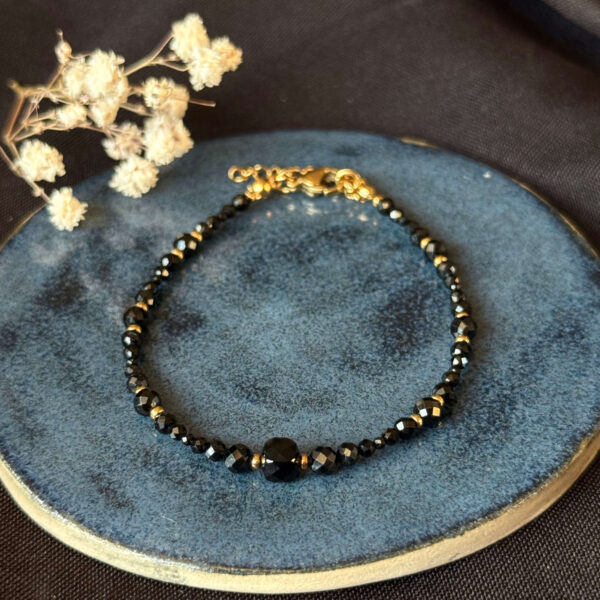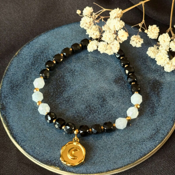 Bransoletka z czarnym turmalinem, akwamarynem i zawieszką księżycem