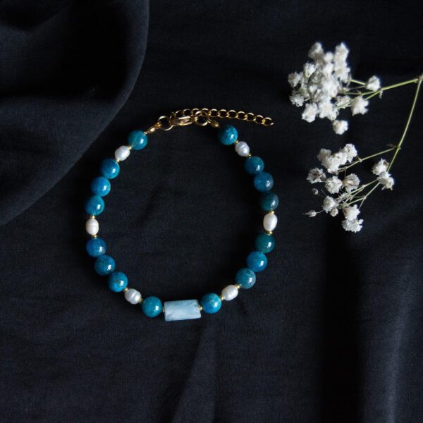 Pierścionek elastyczny z perłami i różowym turmalinem