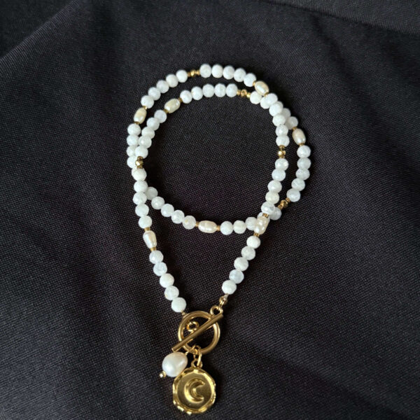Naszyjnik z kamieniem księżycowym, perłami i zapięciem toggle